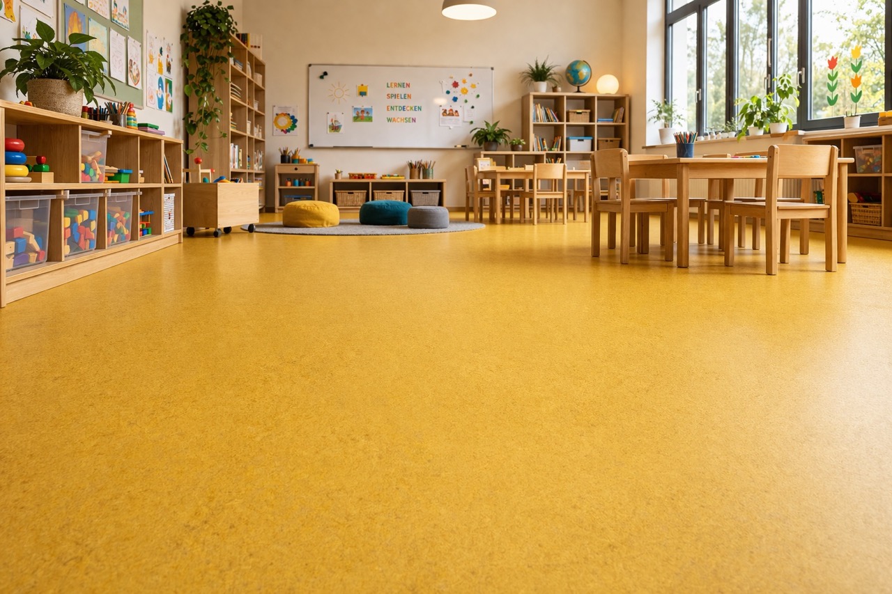 Nachhaltig und langlebig. Hergestellt aus natürlichen Rohstoffen ist Linoleum besonders umweltfreundlich. Robust, hygienisch und ideal für stark genutzte Bereiche.